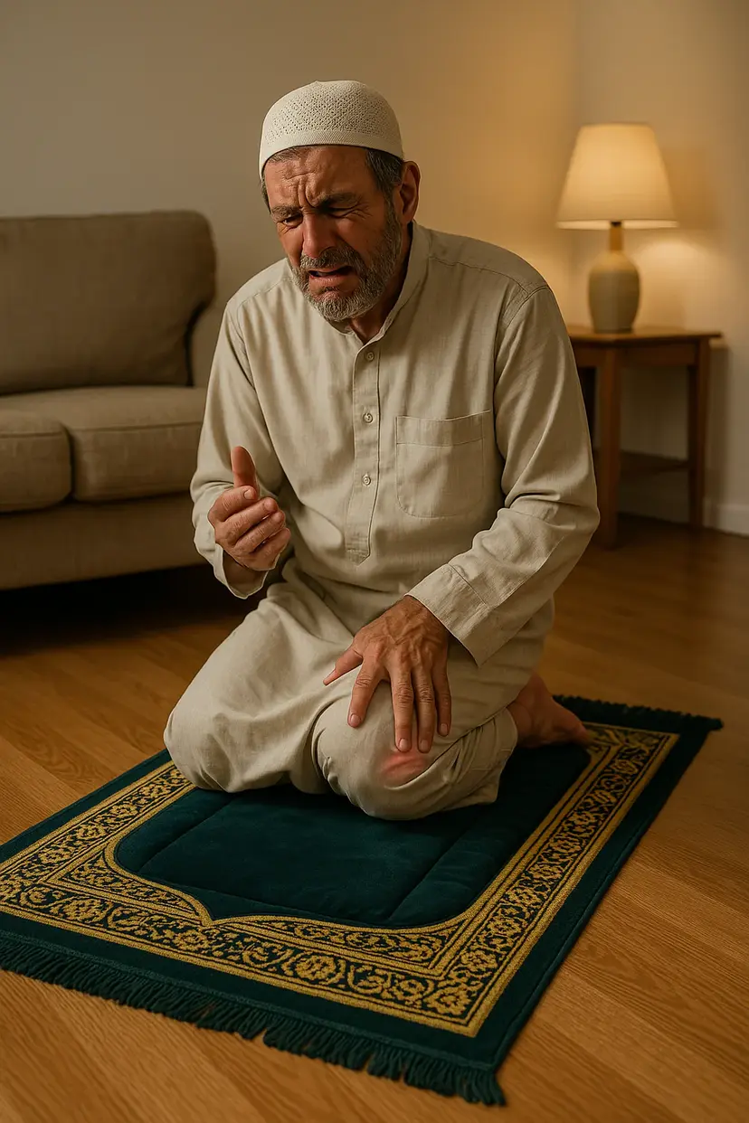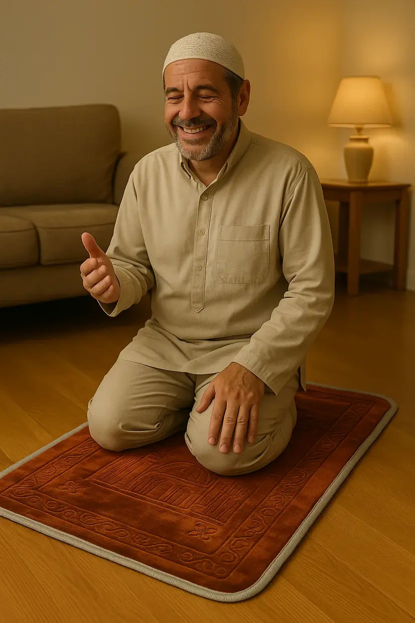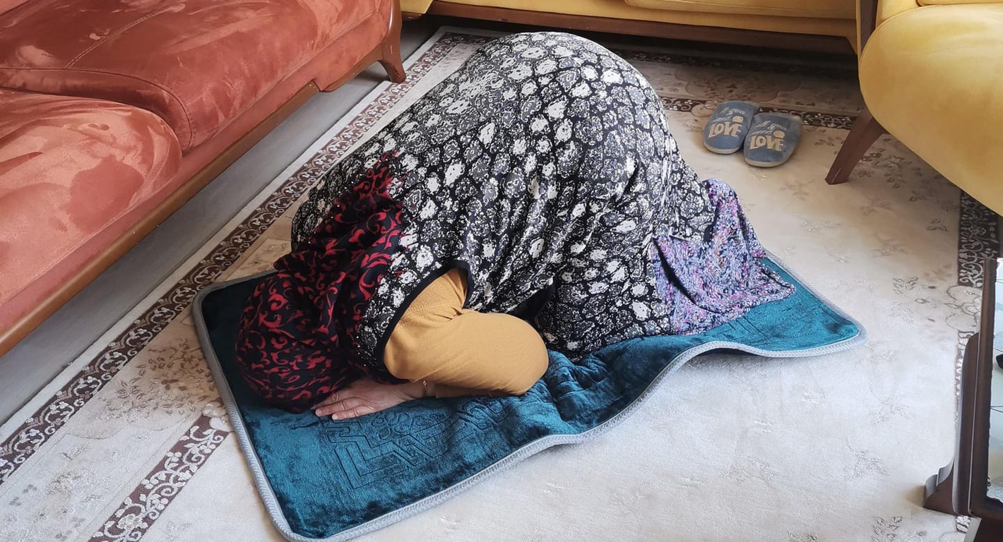 الصورة التي تراها هنا تعود إلى لحظة تسليم سجادة صلاة أهداها أحد عملائنا لوالدته.